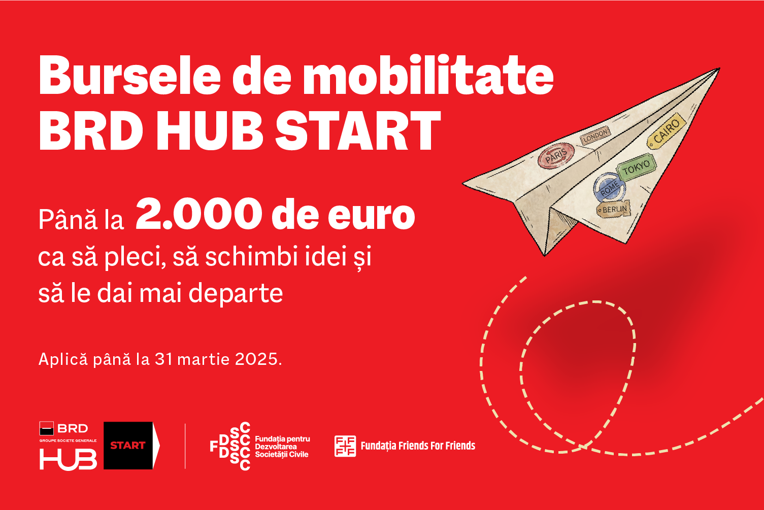 BRD HUB START este un program construit pentru organizațiile studențești și pentru studenții care chiar pun lucrurile în mișcare în comunitățile lor. Pe lângă sprijinul pentru dezvoltarea organizațională, programul oferă și burse de mobilitate pentru tinerii care vor să învețe din contexte noi și să se întoarcă acasă cu idei și energie care fac diferența.